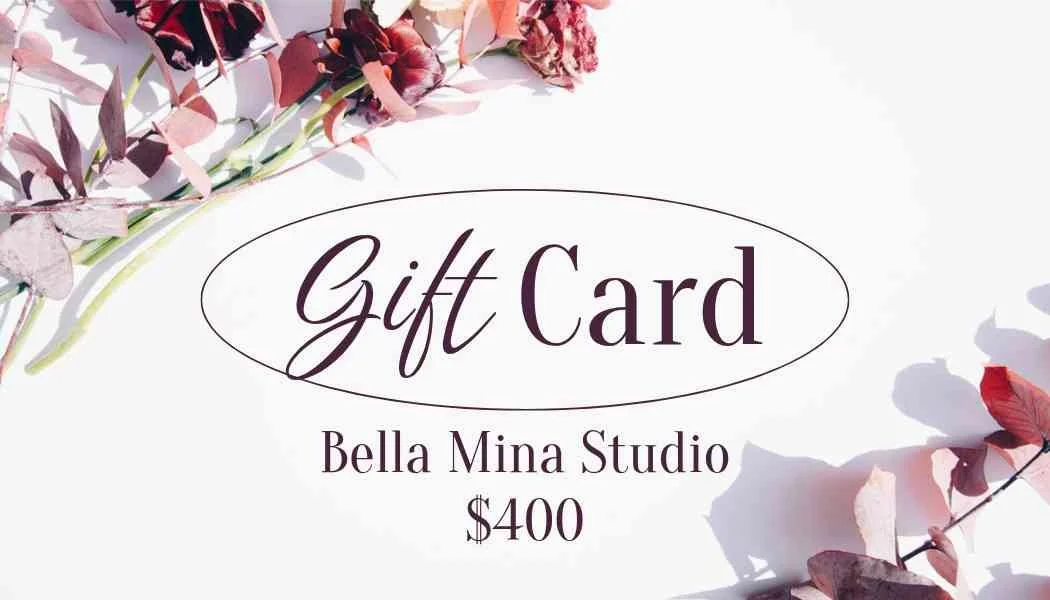 BELLA MINA GIFT CARDS from $20.00 Select Value $20.00 $40.00 $60.00 $80.00 $90.00 $100.00 $120.00 $150.00 $200.00 $250.00 $300.00 $400.00 $500.00 BUY GIFT CARD Added!